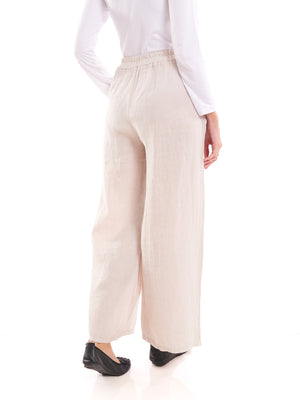 Made in a soft 30% linen, 70% cotton mix, the Beige Relaxed Trousers boast a palazzo-style leg for an elegant, modest flow. An adjustable drawstring waist ensures a personalized fit from M to XL, and the airy fabric provides all-day comfort in warm weather. Discreet side pockets blend seamlessly into the streamlined design, offering both style and convenience.