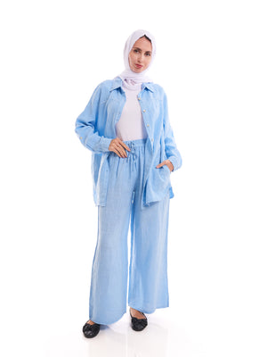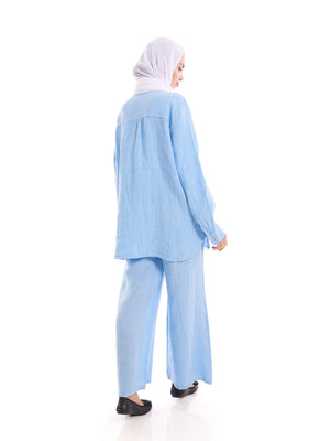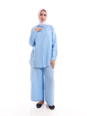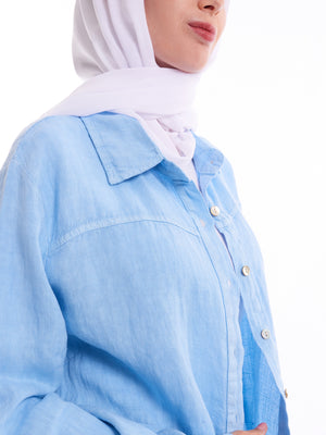 Breeze through summer in style with our Light Blue Linen-Blend Oversized Shirt, made from a breathable blend of 30% linen and 70% cotton. This modest, lightweight piece is designed for comfort and coverage, with a relaxed fit that’s perfect for layering or wearing on its own. The soft light blue tone brings a sense of calm and freshness, ideal for warm, sunny days.