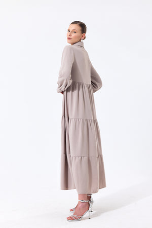 Long Sleeve Tiered Maxi Off-White Dress