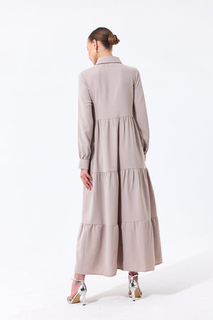 Discover our elegant Long Sleeve Tiered Maxi Dress, a timeless piece available in a variety of captivating colors including green, pink, and off-white. Elevate your style with this versatile and graceful dress, perfect for any occasion. Its button-up front, collared neckline, and tiered skirt design ensure both comfort and sophistication. Explore the beauty of effortless fashion with our stunning Tiered Maxi Dress today!