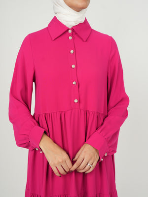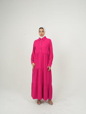 Discover our elegant Long Sleeve Tiered Maxi Dress, a timeless piece available in a variety of captivating colors including green, pink, and off-white. Elevate your style with this versatile and graceful dress, perfect for any occasion. Its button-up front, collared neckline, and tiered skirt design ensure both comfort and sophistication. Explore the beauty of effortless fashion with our stunning Tiered Maxi Dress today!