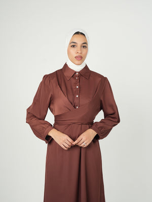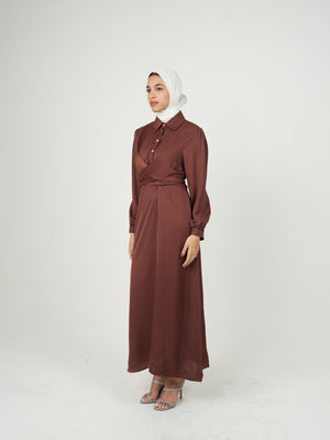 Satin Maxi Wrap Around Brown