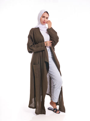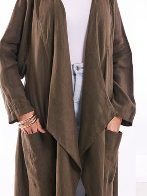 Olive Flow Linen Kimono – 100% Pure Linen